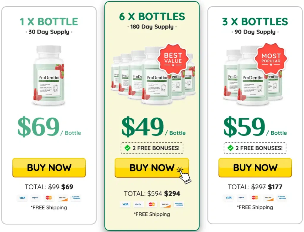 ProDentim is a premium product that is only available on the official site and cannot be purchased on any other platform since the company doesn’t sell its products in other places. All packages come with free shipping, which means buyers don’t have to include this cost in the final price. The company also offers 60-day money-back guarantee on every purchase. If the product does not work in the manner it was promised, at any point in the course of use, the buyer can return it within the specified period for a complete refund.